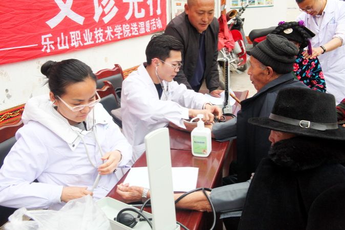 乡村振兴、义诊先行,在为觉村和俄罗村义诊现场,村民络绎不绝,学院医疗团队周兵、向亚君、曾川、李晟四位老师为群众免费测血压、听诊心肺,还有针灸、推拿、内科、护理保健等义诊200余人次。