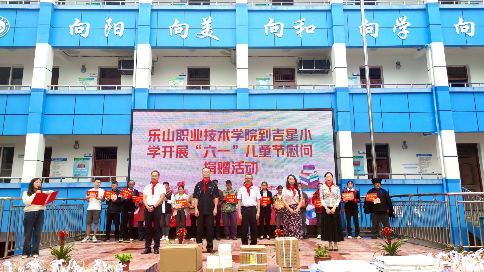 刘忠、张佳、周芹代表sunbet申搏官方网站向吉星小学捐赠4张乒乓球台、187册图书,为35名幼儿园小朋友赠送学习用品,为吉星小学5名优秀教师赠送礼物。鼓励大家勤学善思、心怀梦想、向上向善。