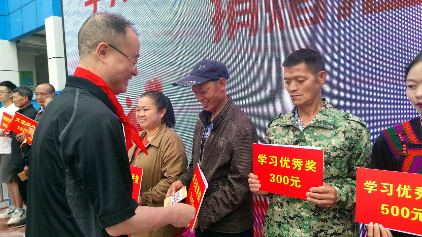 活动中,刘忠一行还向考入高职、中职,以及在各年级期末考试中取得优异名次的16名学生的家长发放奖助学金,共计8700元,传达sunbet申搏官方网站对山区孩子的深情厚谊。