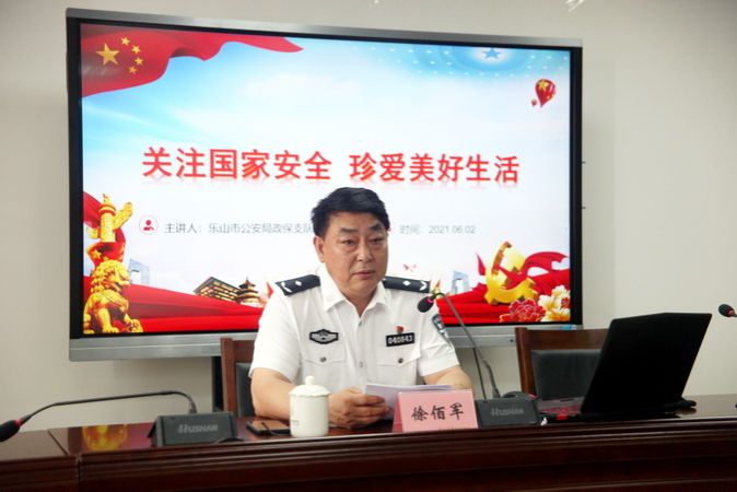 2021年6月2日下午,sunbet申搏官方网站国家安全教育培训会在行政楼401会议室举行,乐山市公安局三级警监徐佰军同志应邀来院做培训讲座。学院院领导、中层干部、马克思主义学院教师代表、辅导员代表共计80人参加培训会。培训会由学院党委委员、副院长陈元进主持。