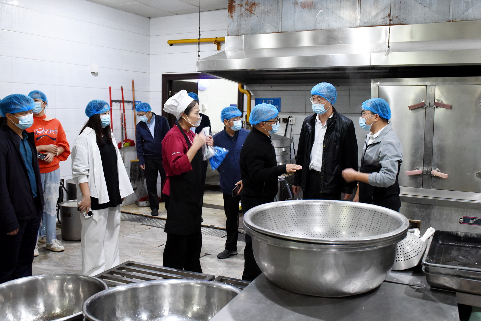 11月1日上午,学校校长刘忠,党委委员、副校长陈元进、张学河、封家福,党政办、宣传部、审计处、保卫处、后勤处相关负责人一行,检查了学校1、2号食堂的食品安全和卫生情况。