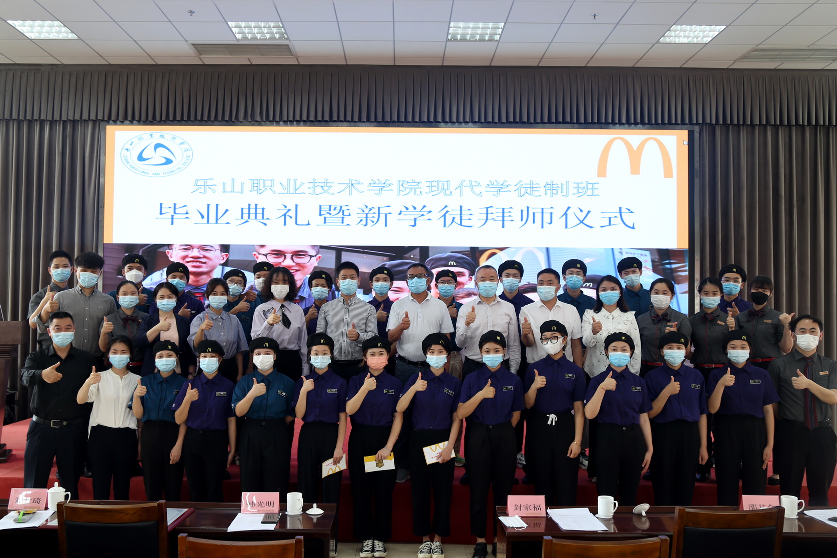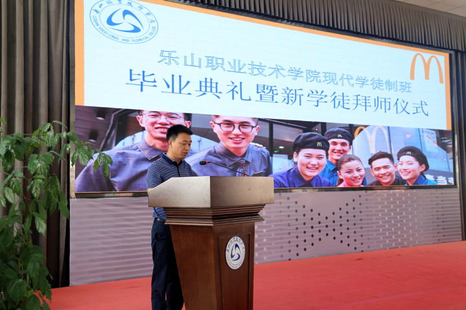 近日,学院财经管理系在学术交流中心3004会议室,通过线上直播方式举办了麦当劳现代学徒制班2019级毕业典礼暨2021级新学徒拜师仪式。四川金拱门食品公司营运总监韩光明、人力资源部负责人刘仕琦等企业领导和师傅,学院副院长封家福、财经管理系主任邵其会、系总支副书记(主持总支工作)易新忠以及部分师生参加。