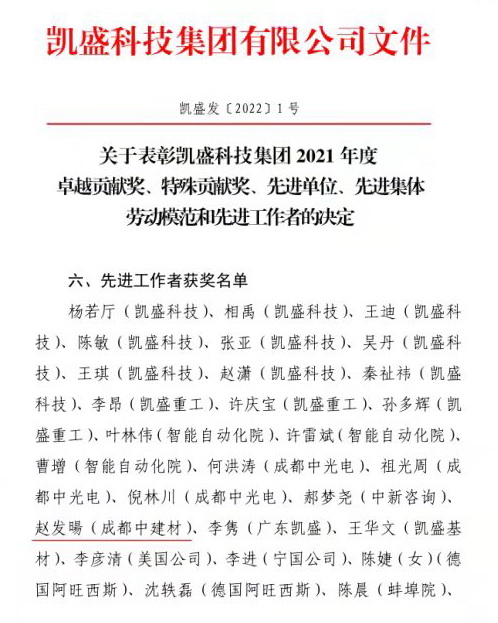 现就职于央企中国建材集团下属凯盛科技集团子公司成都中建材光电材料有限公司,BIPV市场部项目助理,因工作业绩突出,被评为集团2021年度先进工作者。