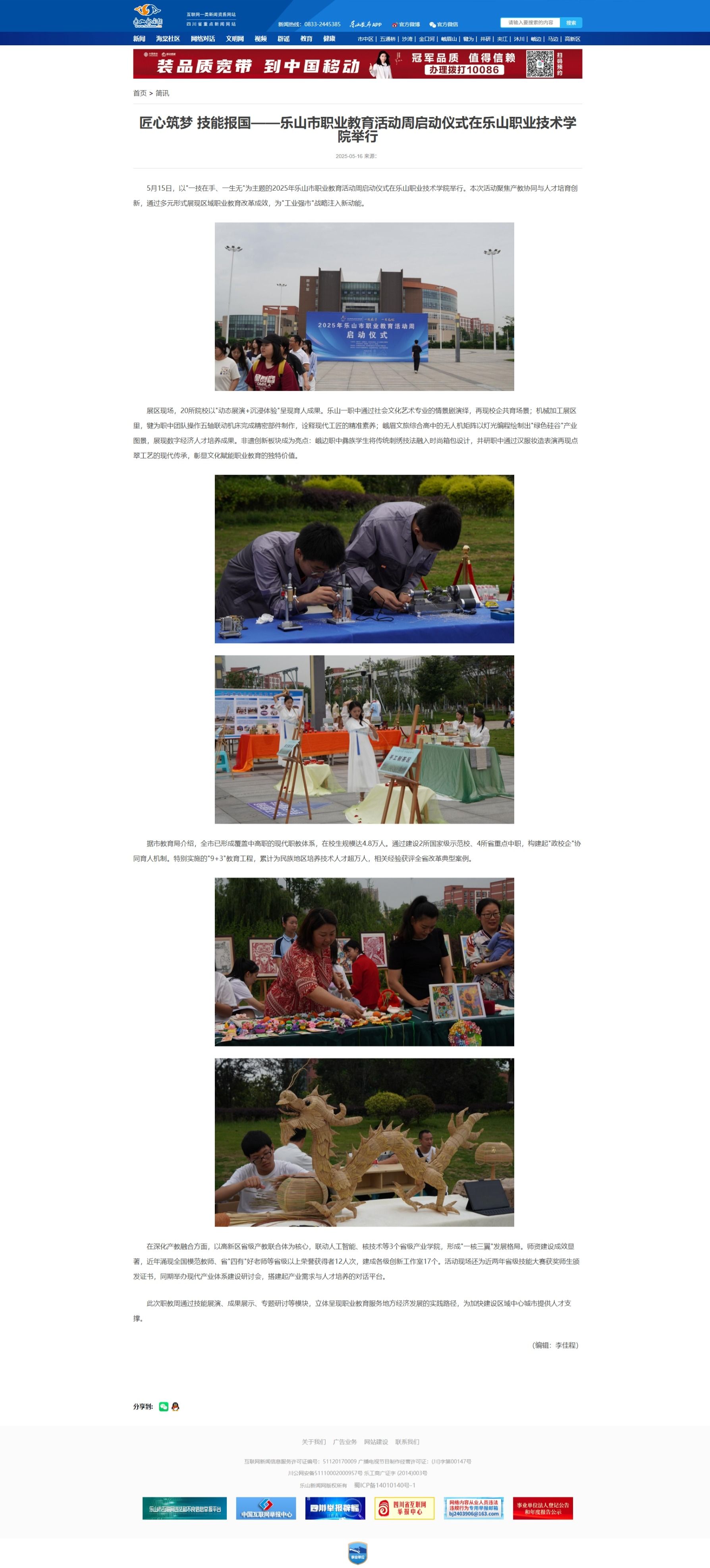 乐山新闻网:匠心筑梦 技能报国——乐山市职业教育活动周启动仪式在sunbet申搏官方网站举行
