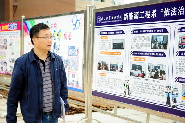 省教育厅检查组专家在学院党委书记蹇路,党委副书记、纪委书记陈芝海,副院长雷永,院长助理程小平的陪同下参观了学院新校园,考察学院依法治校校园教育宣传环境。
