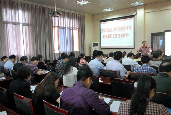 按照《sunbet申搏官方网站依法治校工作方案》的要求,学院机关工会于4月17日上午在六楼会议室组织机关职工近百人开展了《sunbet申搏官方网站依法治校普法教育》活动,活动现场,严肃认真,取得园满成功。