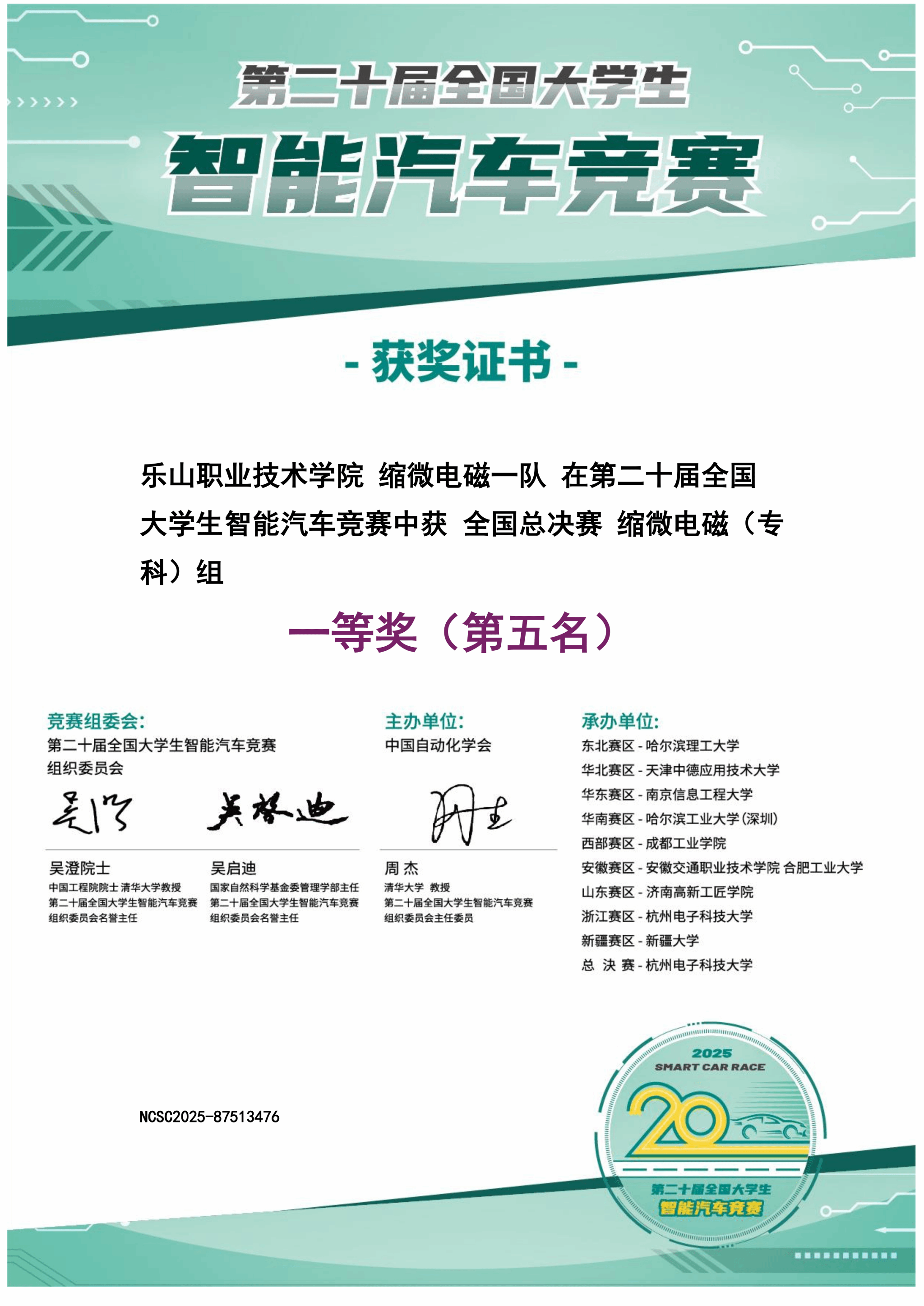 大学生智能汽车竞赛中获全国总决赛缩微电磁(专科组)一等奖