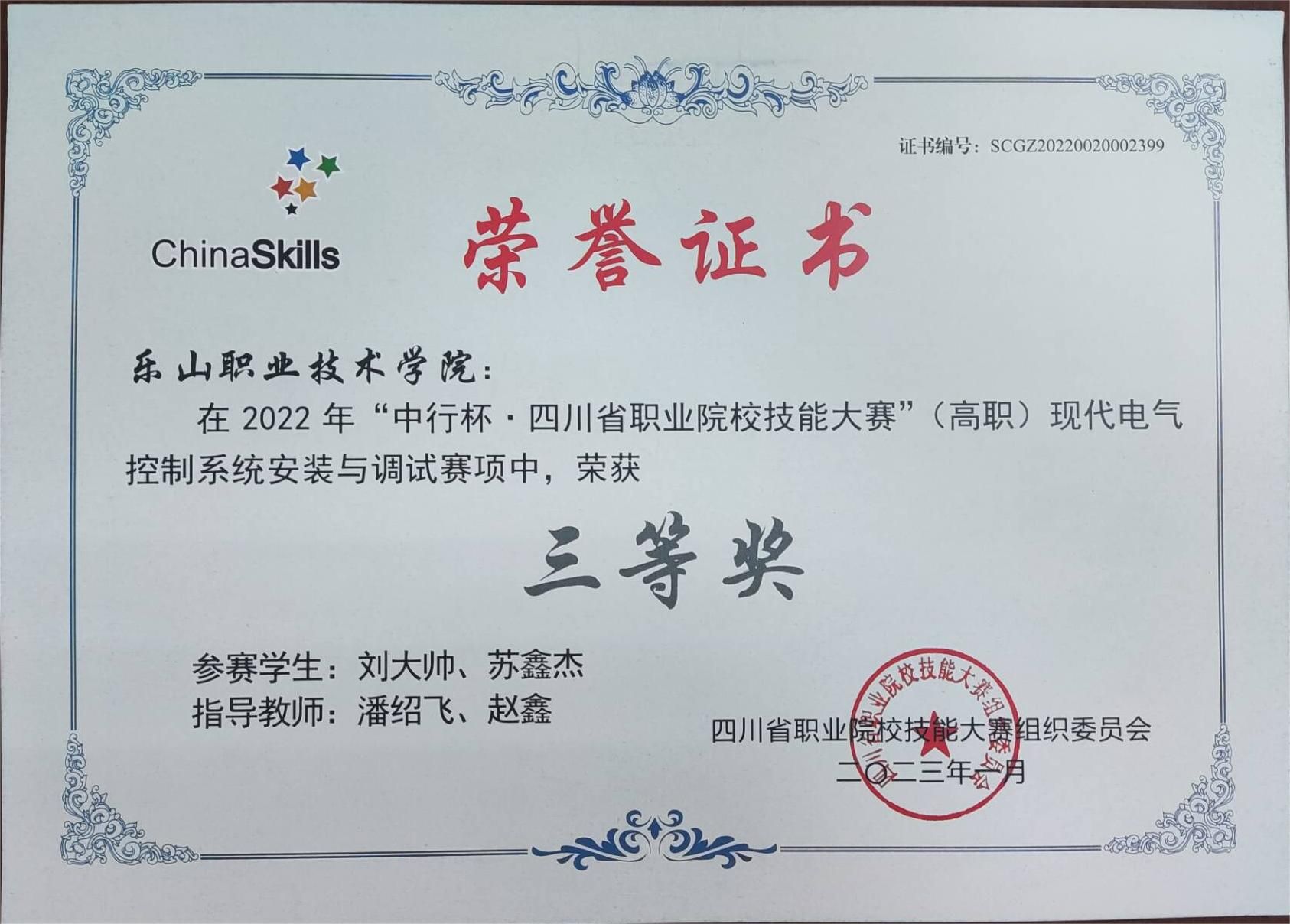 学院学生获“中行杯·四川省技能大赛”新能源汽车智能化技术赛三等奖
