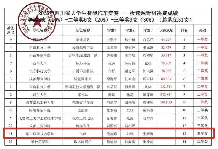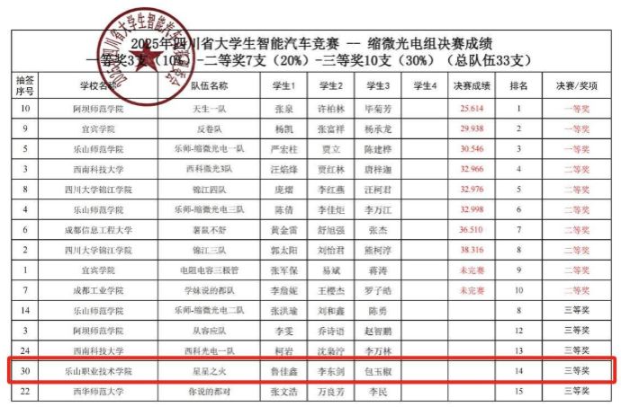 6月6-8日,由四川省教育厅主办的2025年四川省大学生智能汽车竞赛在四川旅游学院举行,申搏官网智能制造学院陈景琪、刘磊、谈振等教师指导6支队伍参赛,经过激烈角逐,最终获得省级三等奖4项,分别是缩微电磁组2项、缩微光电组1项、极速越野组1项。