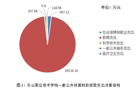 2017年一般公共预算财政拨款支出20140.52万元,主要用于以下方面:一般公共服务支出0.6万元,占0.003%;教育支出19316.16万元,占95.91%;科学技术支出247.68万元,占1.23%;社会保障和就业支出457.12万元,占2.27%;医疗卫生与计划生育支出118.96万元,占0.057%。