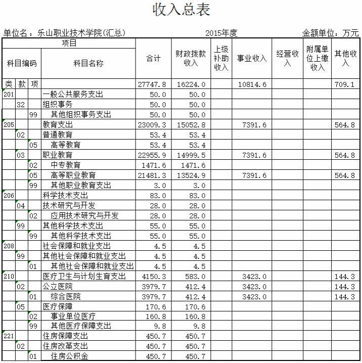 2015年sunbet申搏官方网站收入决算总额为31573.5万元,其中:当年财政拨款收入16224万元,事业收入10814.6万元,其他收入709.1万元,用事业基金弥补收支差额408.3万元,上年结转收入3417.4万元。收入决算总额较2014年减少815.38万元,主要原因是2015年上年结转收入较2014年上年结转收入降低。