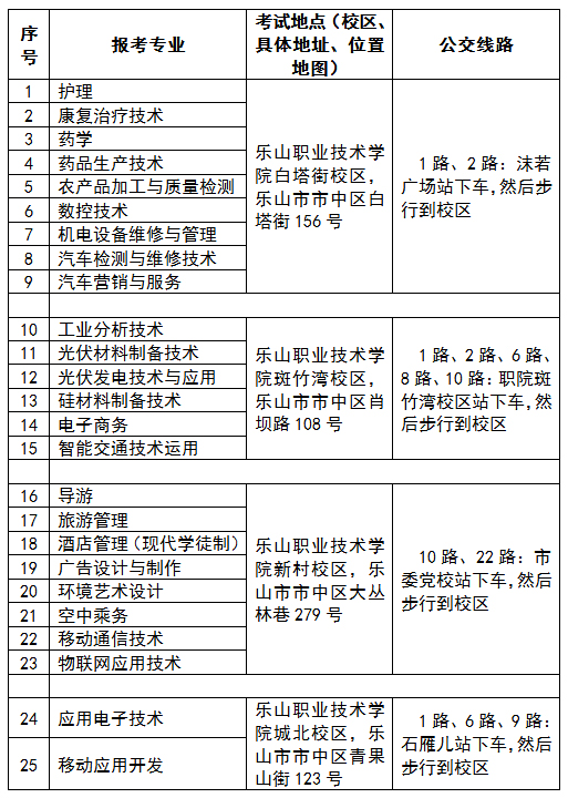 一、我院2017单独招生考试地点安排如下表所示: