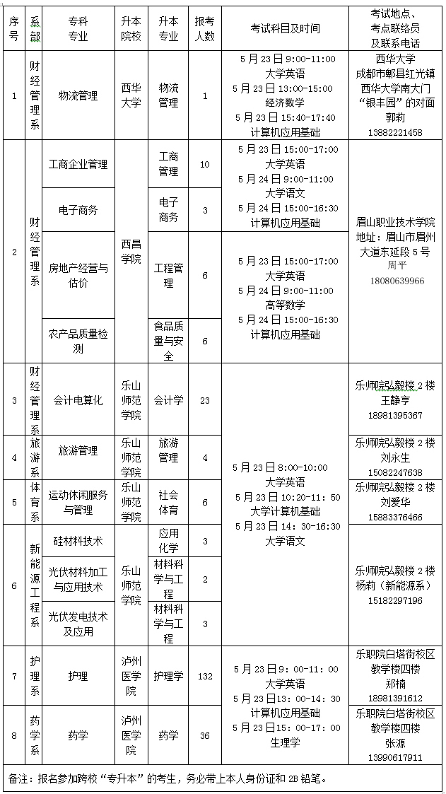 根据《四川省教育厅关于2015年普通高等学校选拔优秀专科毕业生进入本科阶段学习的通知》(川教函〔2015〕155号)文件通知的精神,为切实做好我院2015年跨校“专升本”考试工作,现就相关事宜通知如下: