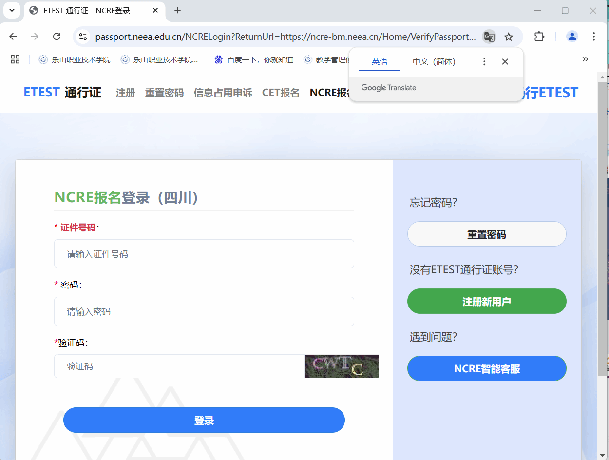点击考生报名入口,进入考生登录页面: