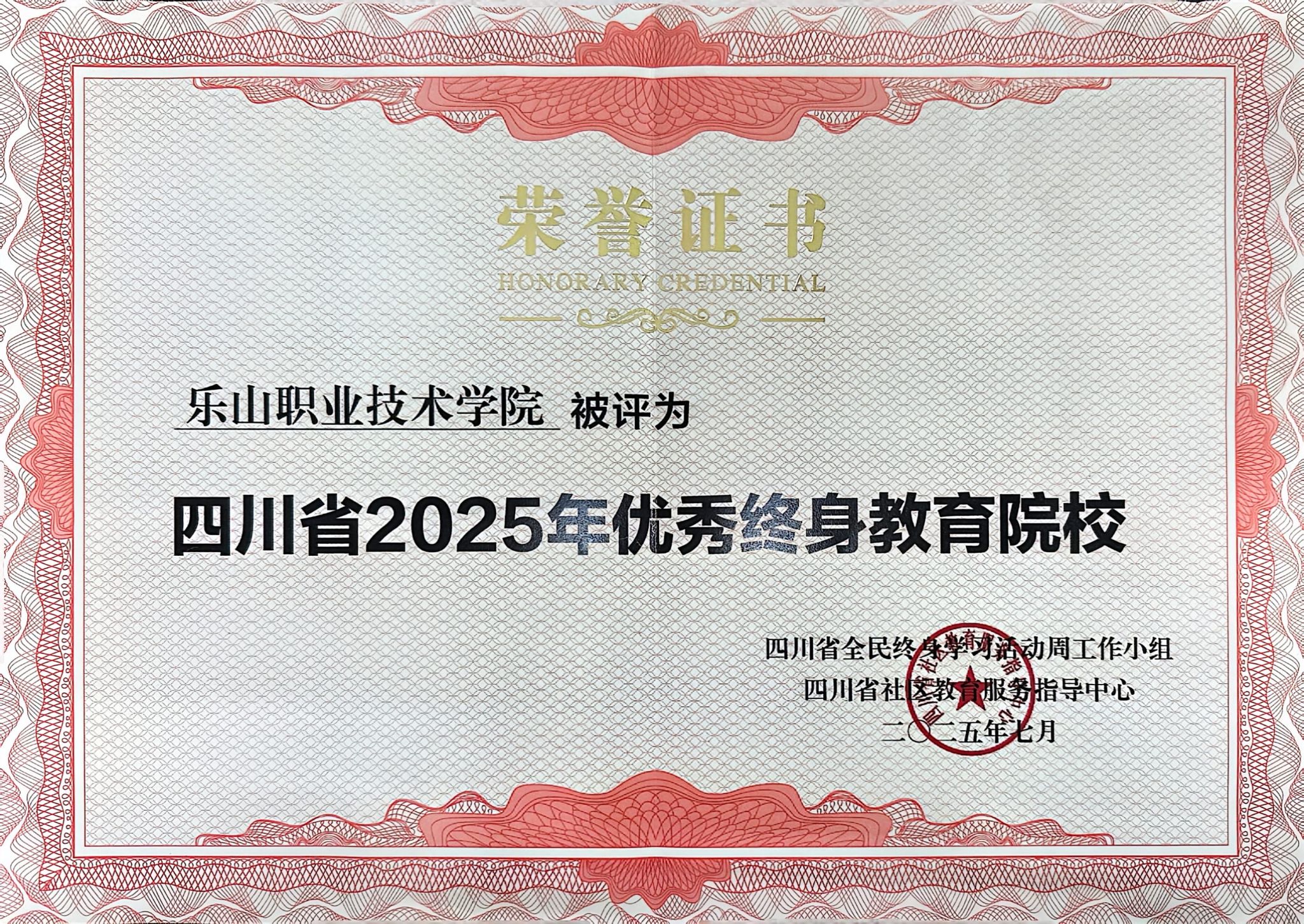 近日,sunbet申搏官方网站凭借在服务全民终身学习教育体系建设中的突出贡献,被评为“四川省2025年优秀终身教育院校”。