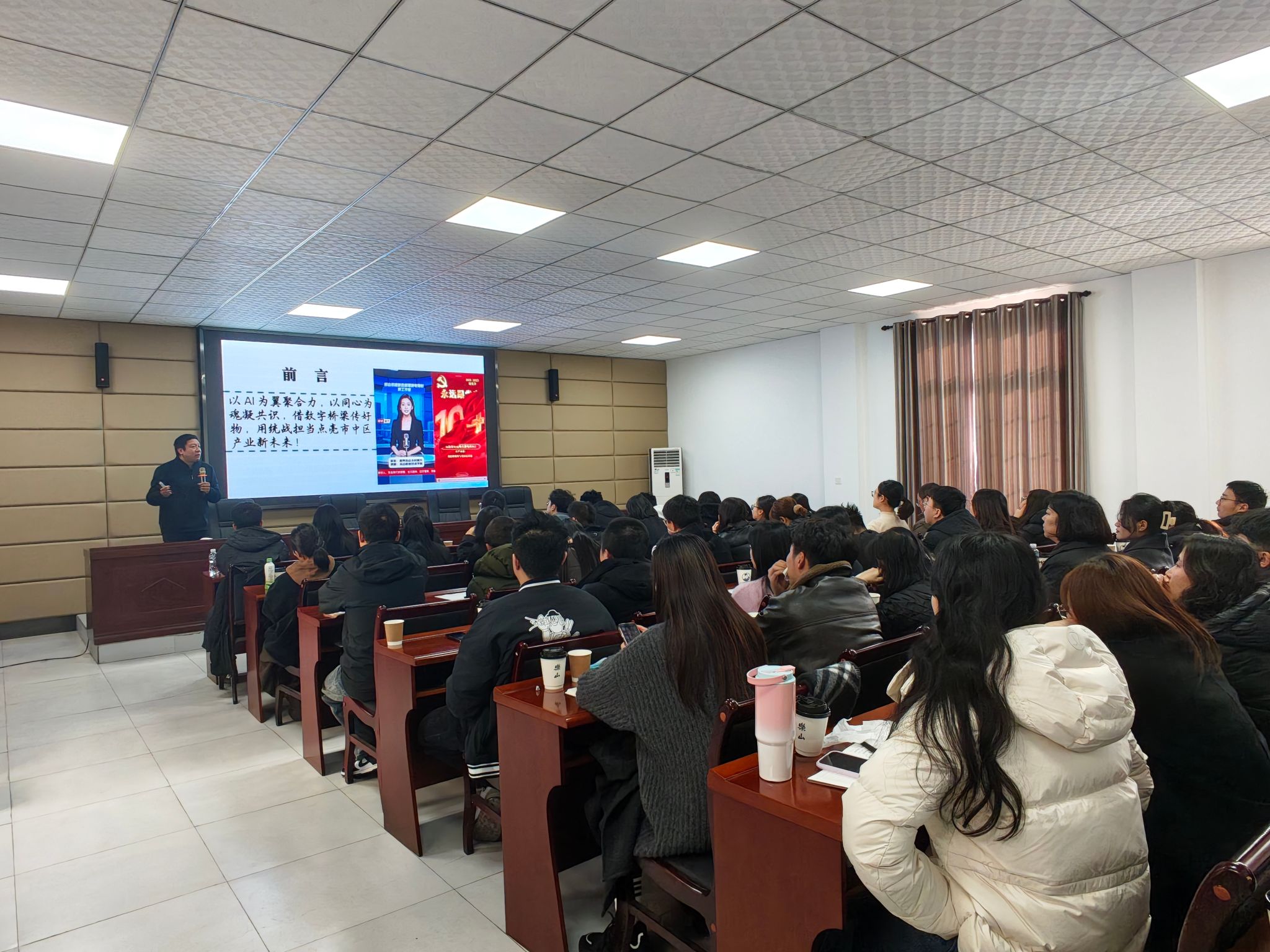 12月17日下午,乐山市市中区2025年党外中青年干部暨统战干部培训班在市中区民主党派活动中心顺利举办,sunbet申搏官方网站唐智鑫、张荣荣老师参与培训,本次培训覆盖面广、参训群体多元,涵盖各镇(街道)统战委员,各镇(街道)及区级各部门党外年轻干部,各民主党派、区新联会、区知联会、区网联会等统战组织成员共计56人,申搏官网乐山市唐智鑫新媒体电商创新工作室领衔人唐智鑫开展了“AI视角下短视频直播赋能宣传”专题讲座。