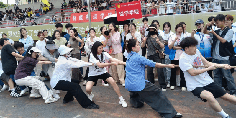 开幕式上,国旗护卫队步伐铿锵,率先入场。随后,各学院方阵身着整齐服装,精神抖擞、口号嘹亮地走过主席台。医学学院方队步伐整齐,身着手术室洗手衣,表演洗手操,展现了医学人的专业素养。赛场上,各项赛事精彩纷呈。在田径项目中,医学学子们如离弦之箭,在跑道上飞驰,用速度诠释青春激情;跳高、跳远场地,选手们纵身一跃,在空中划出优美的弧线,挑战自我极限;拔河场地,师生们将全身力量倾注于手中的麻绳,用行动诠释着永不言败的精神。