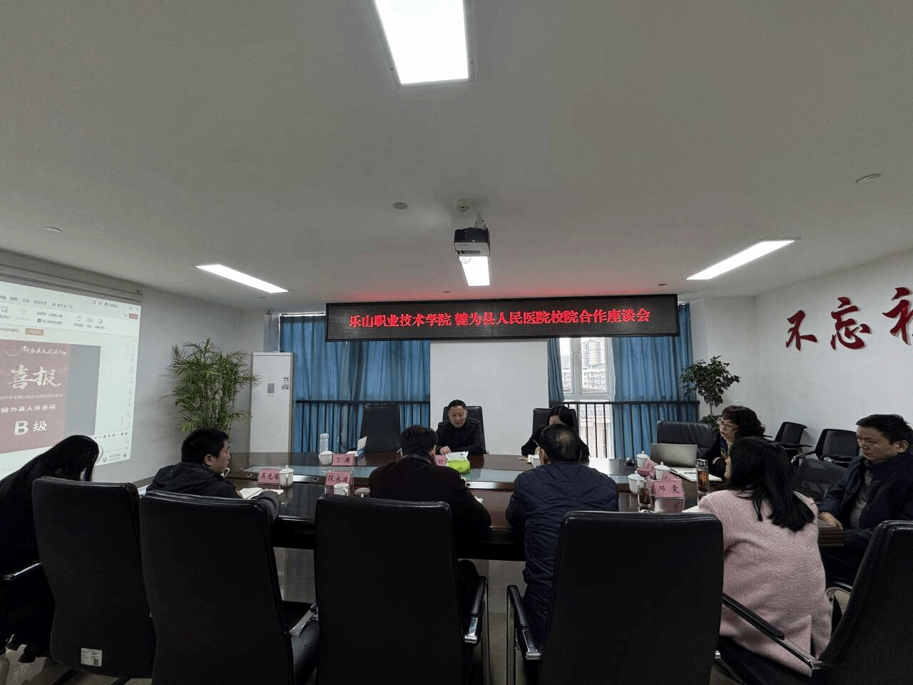 犍为县人民医院院长朱德平、副院长段永建、杨志清、吴光耀以及医院相关部门负责同志热情接待了学院团队,并举行了座谈会。