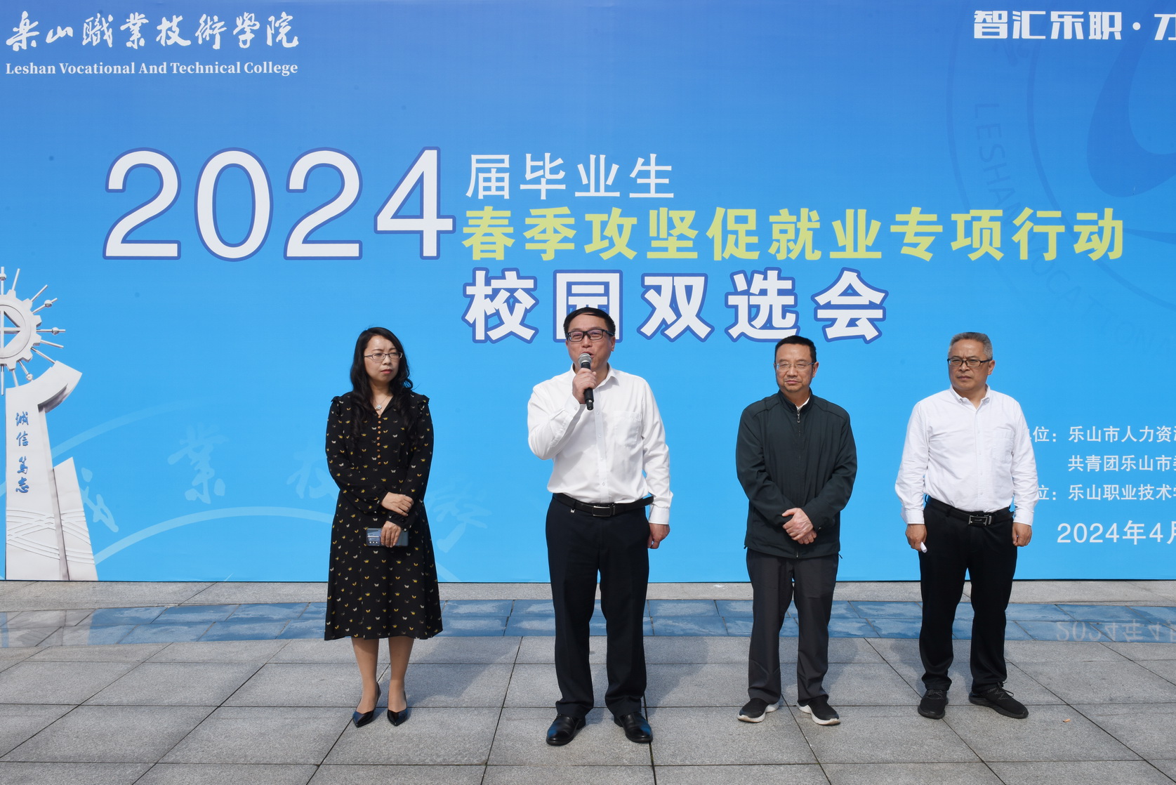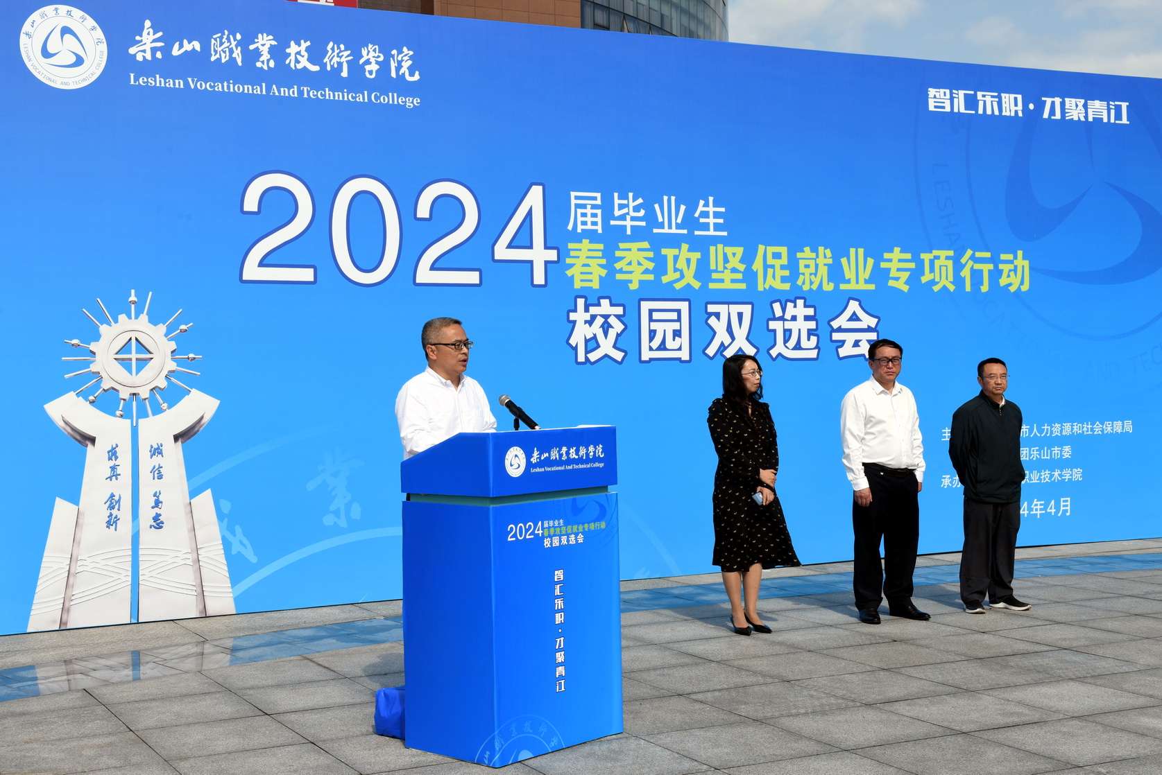 4月19日上午,由乐山市人力资源和社会保障局、共青团乐山市委主办,sunbet申搏官方网站承办的“2024届毕业生春季促就业攻坚行动启动仪式暨大型校园双选会”在sunbet申搏官方网站明德广场举行。学校领导成定彬、陈元进、张学河、周芹出席启动仪式,相关部门负责人、二级学院相关负责人、招聘企业代表和2024届毕业生代表参加了启动仪式。