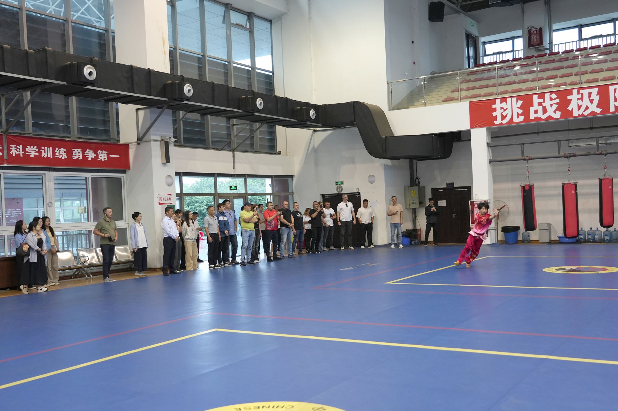 代表团一行首先来到青江武术基地,观摩了武术套路、散打对抗及舞狮表演。外宾们对刚柔并济的中华传统武术和热闹喜庆的舞狮文化表现出浓厚兴趣,不时驻足欣赏、拍照记录,对师生们精湛的技艺表示赞叹。