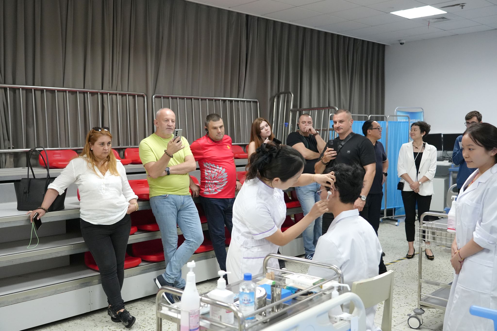 最后,代表团来到医护实训楼,参观了依照高标准建设的红十字应急救护培训中心以及设施完备的护理实训室。规范的操作流程、逼真的模拟环境和学生娴熟的技能展示,赢得了外宾们的频频赞许。