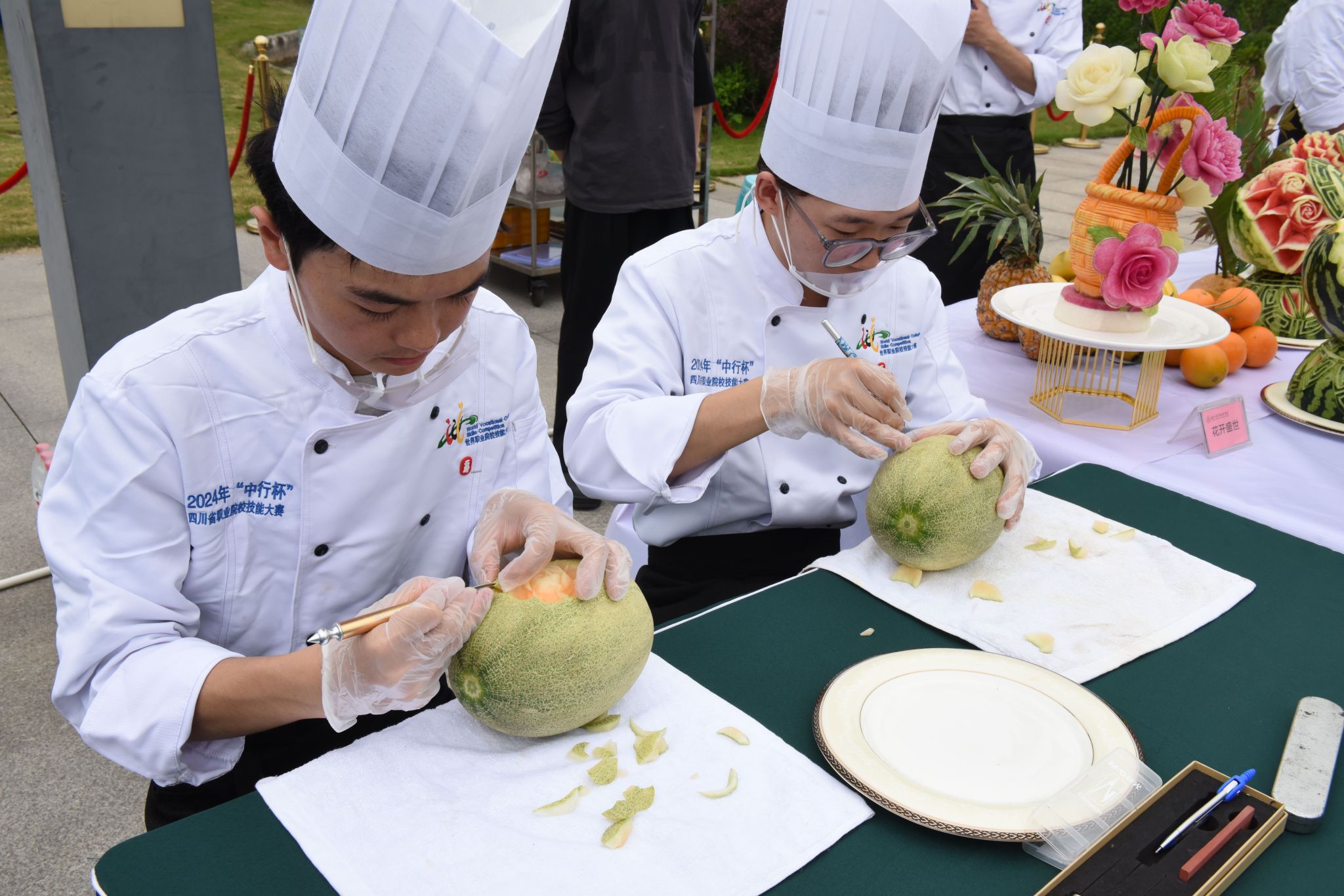 职业教育活动周“职教成果展”现场,在sunbet申搏官方网站的展台前,泰国红十字会护理学院交换生们正在展示医护技能,护理康养学院院长董玉洁介绍道:“在交换期间,泰国交换生们将全面学习中国的语言、技能和文化,2024年,该团队在世界职业院校技能大赛总决赛上斩获国际组金奖。”新能源专业用零碳建筑沙盘,中餐烹饪区雕工精美。特殊专业技能展示凸显专业对接地方产业需求,尽显职教服务社会的担当。