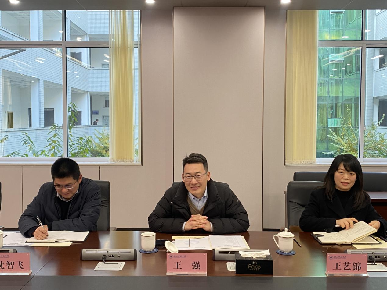 本网讯(文/罗晓娟 图/丁睿琳)1月2日,中国农业银行乐山直属支行行长王强、副行长王艺锦、杨坤,尚纬股份有限公司党委书记、副总经理、董事沈智飞、财务经理廖容一行到乐山师范学院商谈合作。学校校地合作处、招生与就业处、计划财务处、教育发展基金会、经济管理学院等部门和教学院负责人参加。学校党委常委、副校长李方裕出席并主持座谈会。