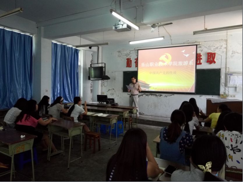 课堂上,黄主任主要讲了中国共产党的性质,并提出同学们必须牢记党的宗旨,发挥五种精神。