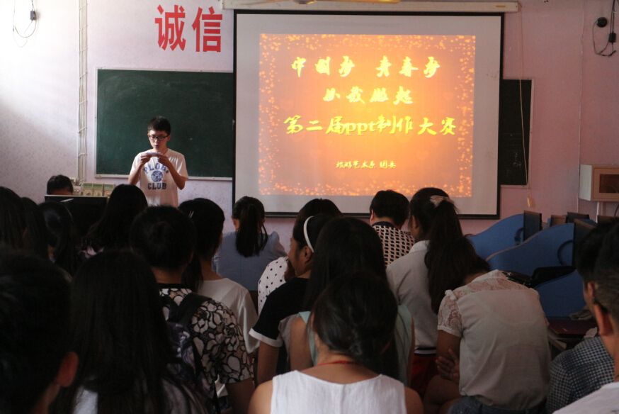 为传递“中国梦”精神,提高同学们对计算机软件的运用能力和语言表达能力,5月3日下午3点30,旅游系第二届PPT制作&演讲大赛在电子阅览室拉开帷幕。此次比赛邀请到了旅游系副主任黄剑波、团委老师刘诗妍及团委副书记赵芳同学担任本次大赛的评委。