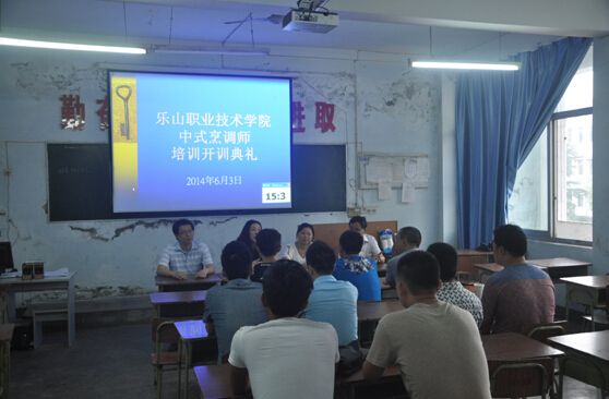2014年6月3日上午九点,由乐山市市中区民政局主办,我院旅游系承办的“乐山市市中区民政局2014年退伍士兵职业技能(中式烹调师)培训开训典礼”在旅游系2楼多媒体教室顺利举行。