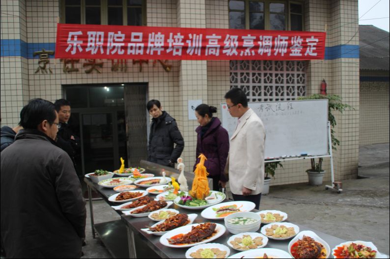 2013年12月19、20日两天,由我系举办的乐山市劳务品牌高级烹调师项目培训班的50名学员,在我系烹饪实训中心接受了职业技能实际操作鉴定,操作菜品设计食雕、冷拼、指定热菜、自报菜等九个菜点。乐山市职业技能鉴定中心郑露主任,我系李忠东主任、何加健副主任、黄剑波副主任亲临考场指导考试工作。