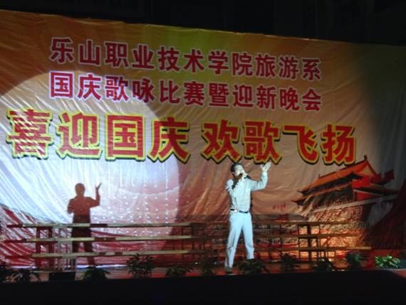 走进十月的阳光,我们迎来了祖国的生日。根据学院第九届大学生艺术节的安排,旅游系在2012年9月27日晚19:30举行了“喜迎国庆 欢歌飞扬”迎国庆歌咏比赛暨迎新晚会。同学们纵情歌唱,自豪的歌声在校园回荡。