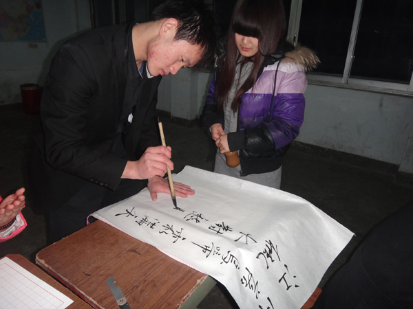 2012年12月16日晚六点,勤澜阁书法社成员在社长的带领下在普专餐饮12-1班教室举办了题为“传承书法文化 彰显书法魅力”的书法比赛。