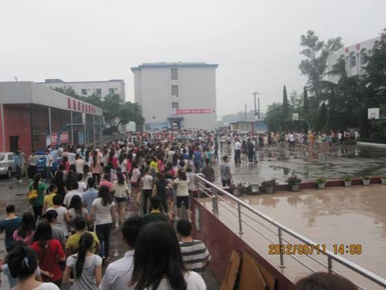 随着警报长鸣,同学们在老师的组织下有序地撤离教室,迅速地到达安全地带——操场。