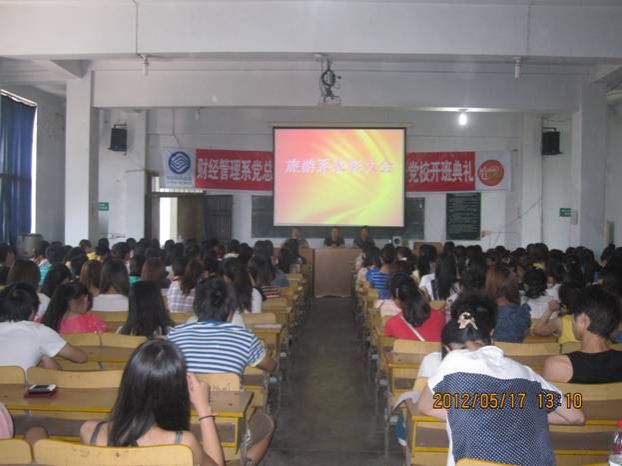 2012年5月17日13:00,旅游系召开了学生表彰大会。系党总支书记李忠东、学管办黄剑波副主任、教务办何加健副主任、各班级辅导员以及全系学生参加了此次会议。