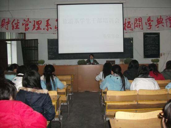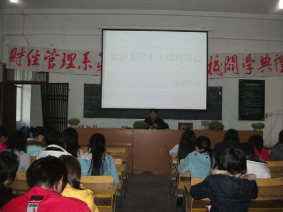 出席本次培训会的有:学生会指导老师胡杨、学生会主席钟慧林、学生会副主席陈马洁以及旅游系学生会全体干部、干事。