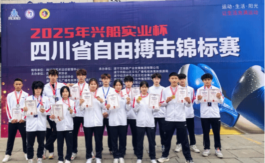 4月4日至6日,由四川省武术运动管理中心指导,四川省武术协会、四川省搏击运动协会主办的2025年四川省自由搏击锦标赛在遂宁市船山区体育馆举行,本次比赛汇聚了全省42家单位的860名运动员。申搏官网14名学生由体育学院负责人朱文彬带队,由代凌江、张繁两位教练指导参赛,最终斩获2枚金牌、7枚银牌的优异成绩,展现了申搏官网学子的卓越风采。