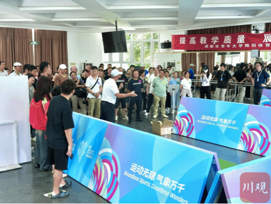 2025年6月17日,第12届世界运动会“世运空间”打造“世运课程活动”走进成都市老年大学,举行第五课——地掷球课程。体育学院刘飞飞和代伟两位老师受邀作为主讲嘉宾进行地掷球课程教学。