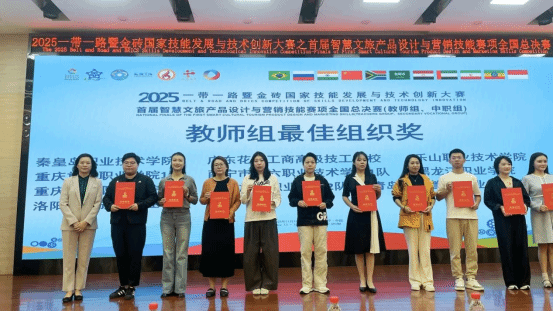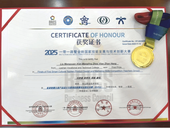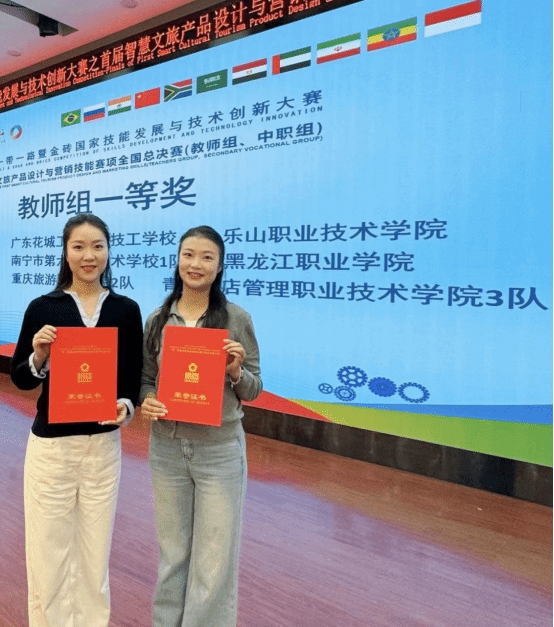 11月15日,2025年“一带一路暨金砖国家技能发展与技术创新大赛之首届智慧文旅产品设计与营销技能大赛”全国总决赛在南宁市第六职业技术学院落下帷幕,申搏官网文化旅游学院选派的教师代表队(参赛教师刘梦媛、鲜梦玲、周啸、詹恒)从全国百余支参赛队伍中脱颖而出,荣获全国教师组一等奖,学校荣获“最佳组织奖”。