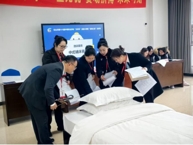 11月12日,乐山市第十六届中等职业学校“文轩杯”技能大赛酒店服务赛项顺利举办。sunbet申搏官方网站文化旅游学院酒店专业李奥萌、赵太萍两位教师及学术交流中心管理团队受邀担任本次赛项裁判,以专业素养为大赛公平公正开展提供有力保障。