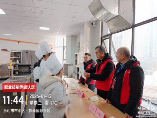 文化旅游学院刘海教师应乐山市嘉州美食文化研究院邀请,于2026年1月13日在乐山市嘉嫂培训学校,为乐山市嘉州美食文化研究院开展的“西式面点师五级”职业技能等级认定工作进行考评。