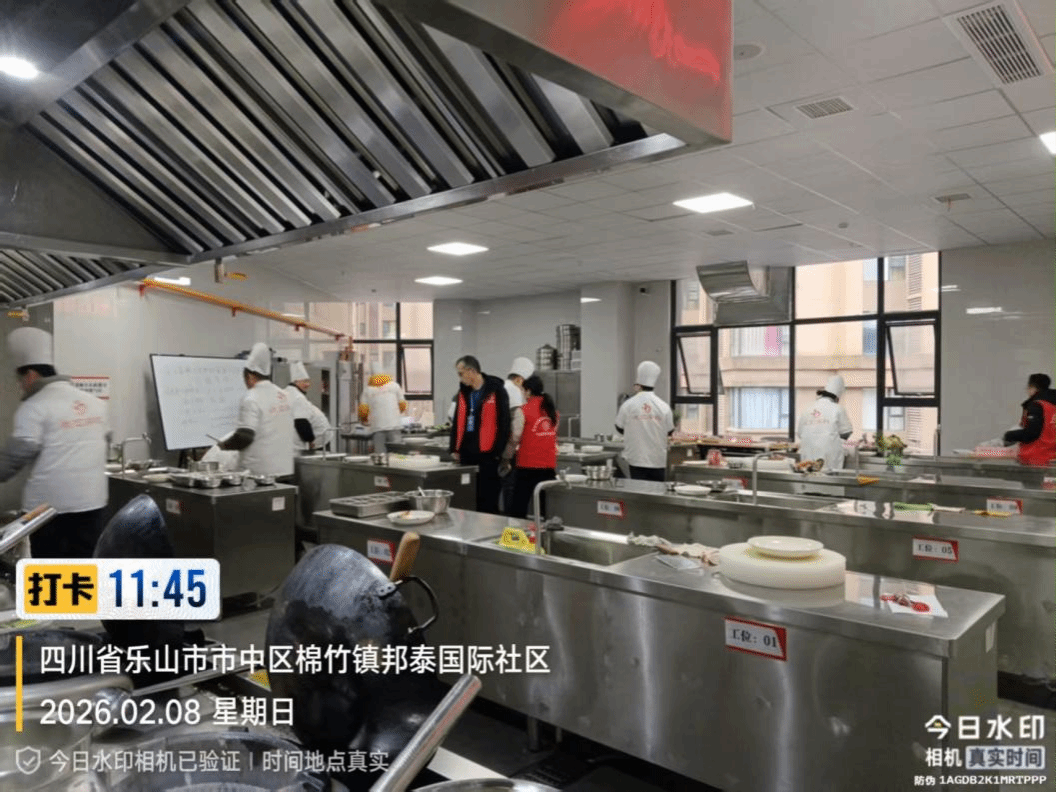文化旅游学院胡文才、刘海两位老师应乐山市嘉州美食文化研究院邀请,于2026年2月8日在乐山市嘉嫂信息科技有限公司,为乐山市嘉州美食文化研究院开展的“中式烹调师三级、四级、五级”职业技能等级认定工作进行考评。