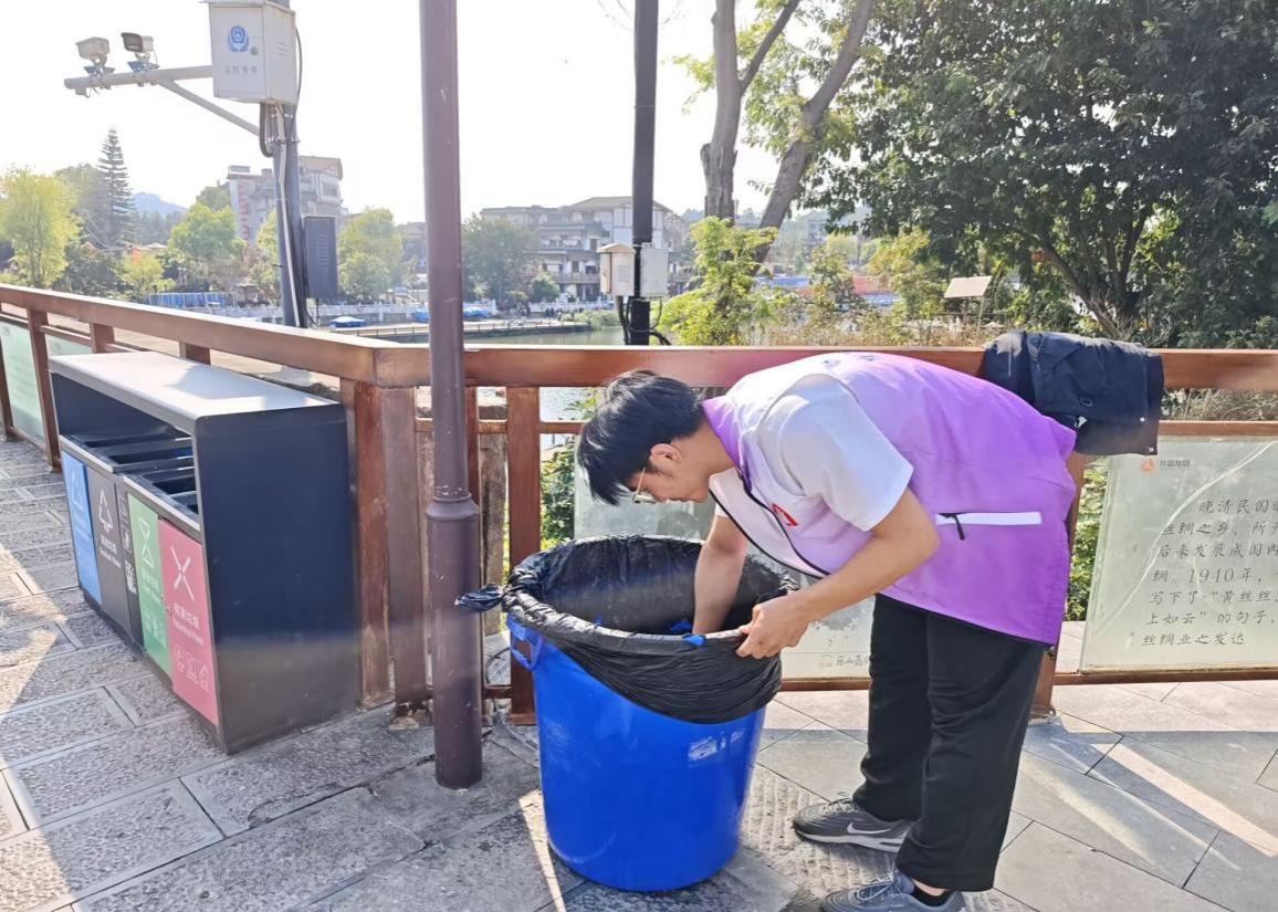 青石板路上、河畔步道旁,处处可见志愿者们忙碌的身影。他们将散落的垃圾逐一收纳,将杂乱的区域整理规范,不仅有效改善了古镇环境卫生,更用实际行动向过往市民与游客传递“爱护环境、人人有责”的文明理念,获得了群众的广泛点赞与认可。