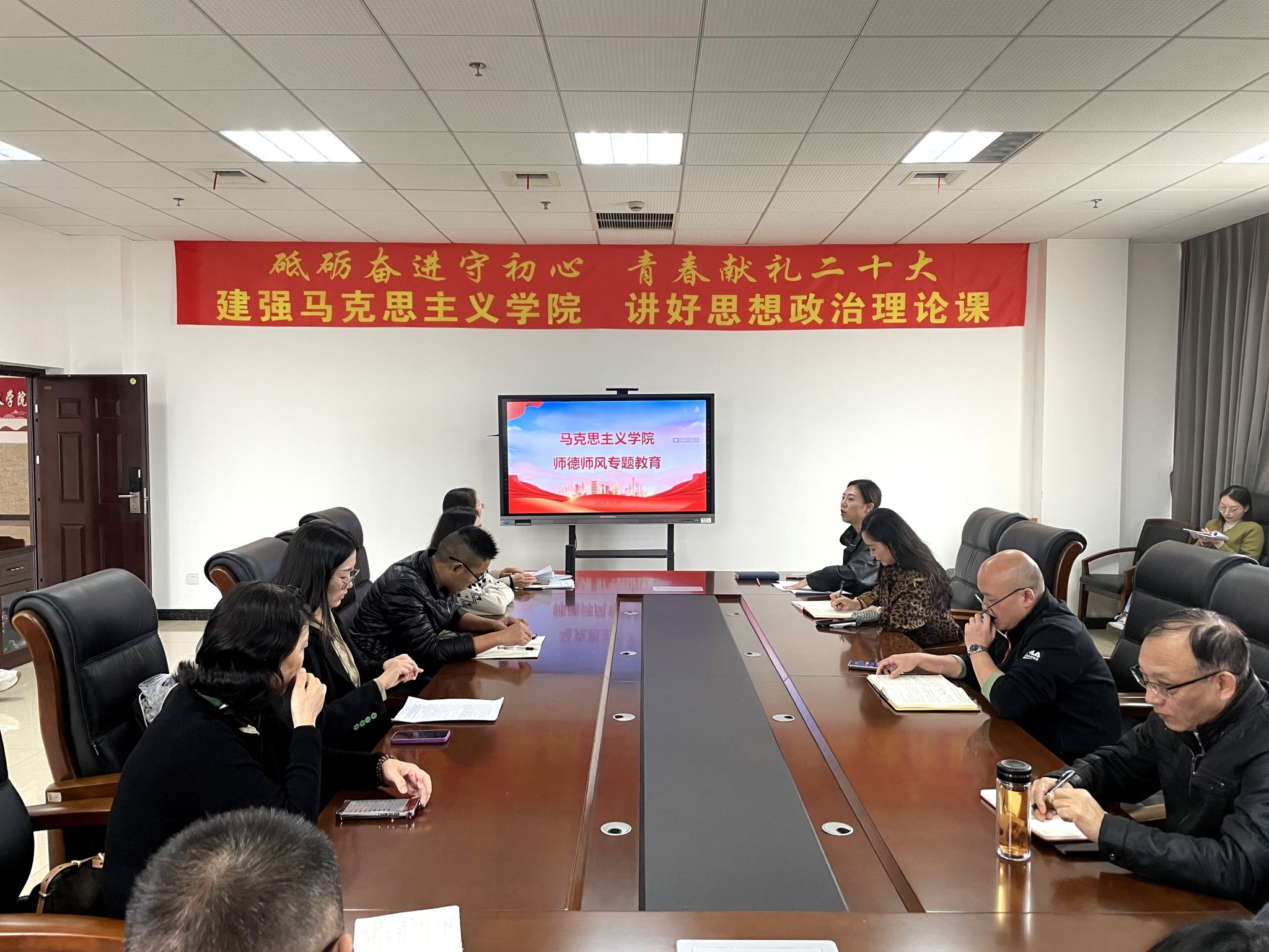 为进一步加强教师队伍师德师风建设,明确师德行为底线,规范师德评价考核,2025年10月29日,马克思主义学院在1号教研楼410会议室组织全体教职工开展师德师风专题学习会,集中学习《sunbet申搏官方网站教师师德失范行为处理办法》《sunbet申搏官方网站教师师德评价考核办法》(以下简称 “两个办法”)。