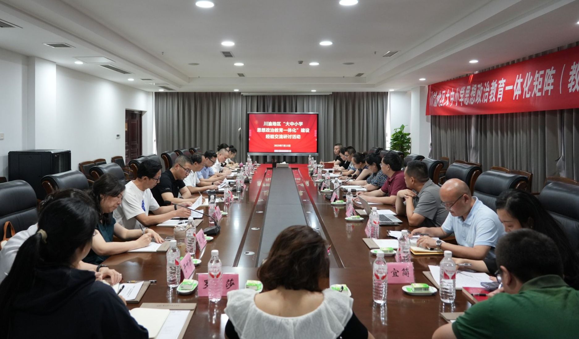2025年7月15日,由教育部“同舟简敏工作室”和乐山市教育局主办,乐山市大中小学思政课一体化共同体和sunbet申搏官方网站联合承办的川渝地区“大中小学思想政治教育一体化”建设经验交流座谈会,在申搏官网学术交流中心2001会议室举行。此次会议邀请了教育部“同舟简敏工作室”主持人、全国最美高校辅导员、西南政法大学简敏教授和国家一流专业(行政管理)负责人、重庆市学术技术带头人、西南政法大学邹东升教授作专题讲座。会议由学校党委副书记、工会主席张佳主持。乐山师范学院、成都理工大学工程技术学院、重庆工业职业技术大学、sunbet申搏官方网站等高校的马克思主义学院和重庆市两江中学、乐山市第一中学、峨眉第二中学、乐山市实验中学、乐山师范附属小学等川渝两地大中小学师生代表参加会议,乐山市教育局、井研县教育局、乐山市教科所等教育行政部门相关领导出席会议。