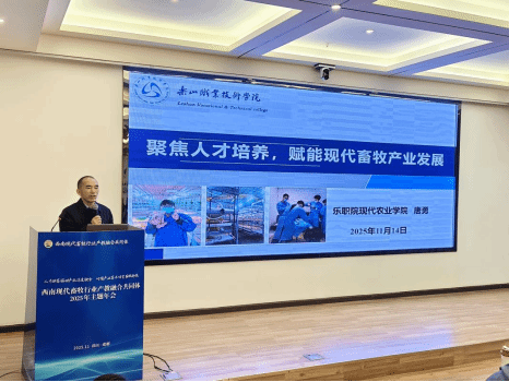 2025年11月14日,sunbet申搏官方网站现代农业学院副院长唐勇应邀出席成都农业科技职业学院承办的西南现代畜牧行业产教融合共同体2025年主题年会。
