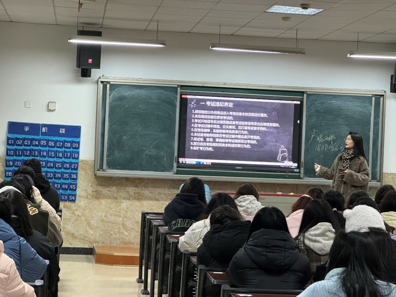 会上,辅导员与同学们就“何为诚信”及“诚信与生活”进行了深入讨论,引导学生理解诚信的深刻内涵。通过讨论,同学们认识到诚信不仅是个人品德的体现,也是学术研究和考核考试中不可或缺的基石。随后,辅导员带领同学们学习了考试纪律和规则,强调了遵守考风考纪的重要性,并提醒同学们在即将到来的期末考试中,必须严格自律,以诚信的态度面对每一场考试,勉励大家调整好心态,以自信的姿态迎接考试。