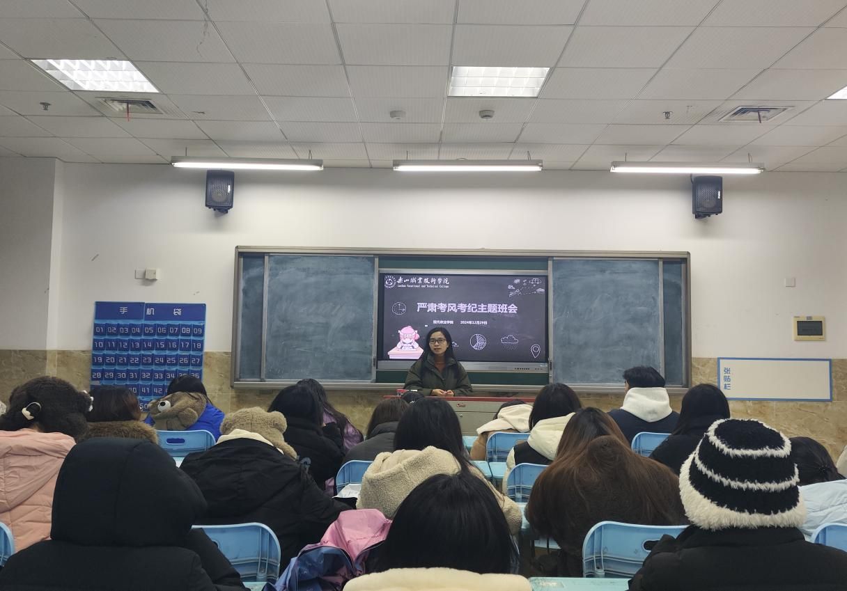 为了增强学生诚信意识,打造公平公正的考试环境,营造诚信考试的校园风气,现代农业学院于2024年12月29日19:00举办了以“严肃考风考纪”为主题的班会活动。此次活动由各班辅导员精心组织开展。