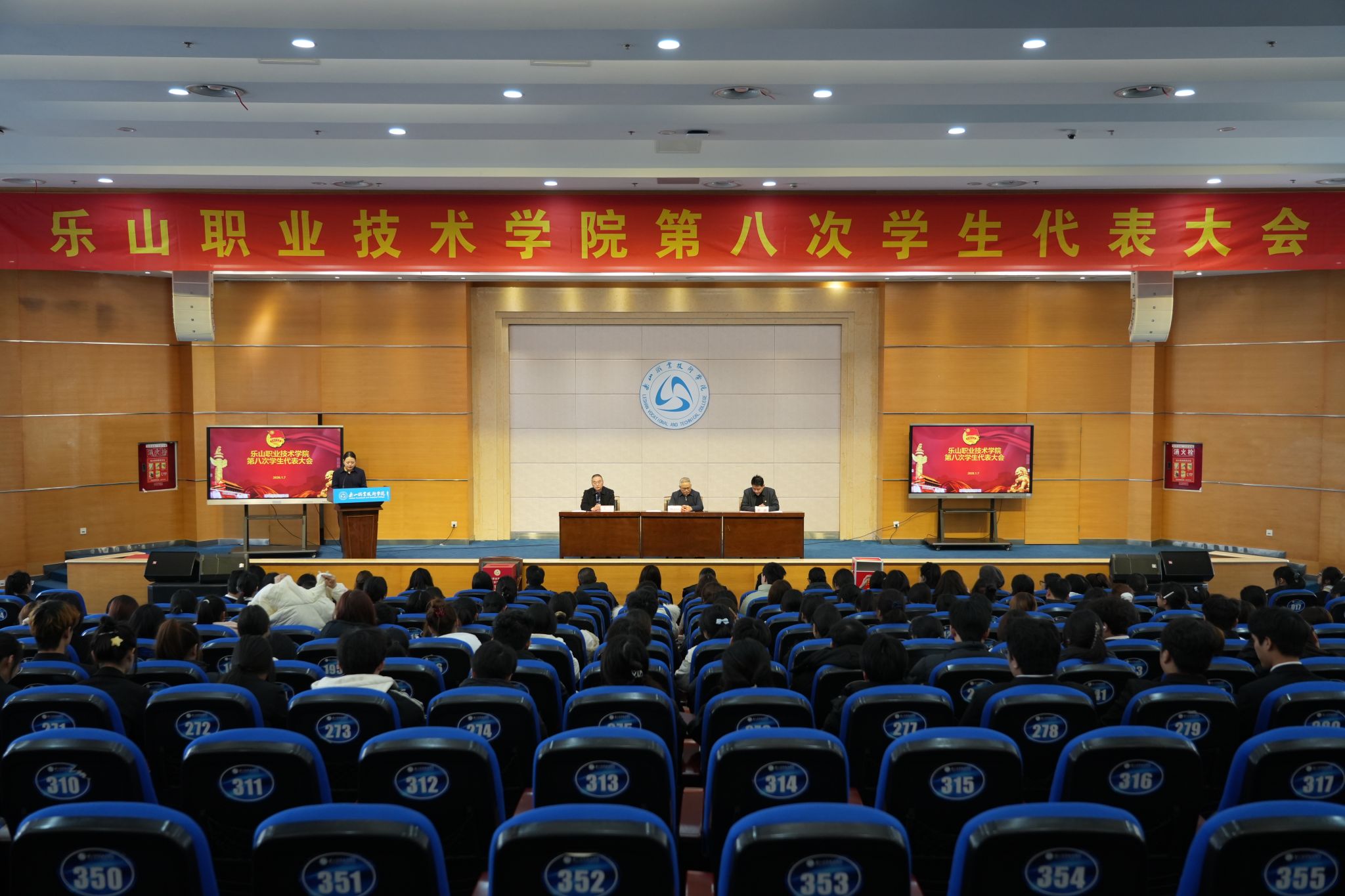 1月7日,sunbet申搏官方网站第八次学生代表大会在学校学术报告厅召开,学校党委委员、副校长张学河、学工部、校团委主要负责同志出席开幕式,各二级学院党总支副书记、团委书记,奥林匹克学校团委书记、校团委、学工部全体老师及182名学生代表参会,大会由校团委张瑞琪主持。