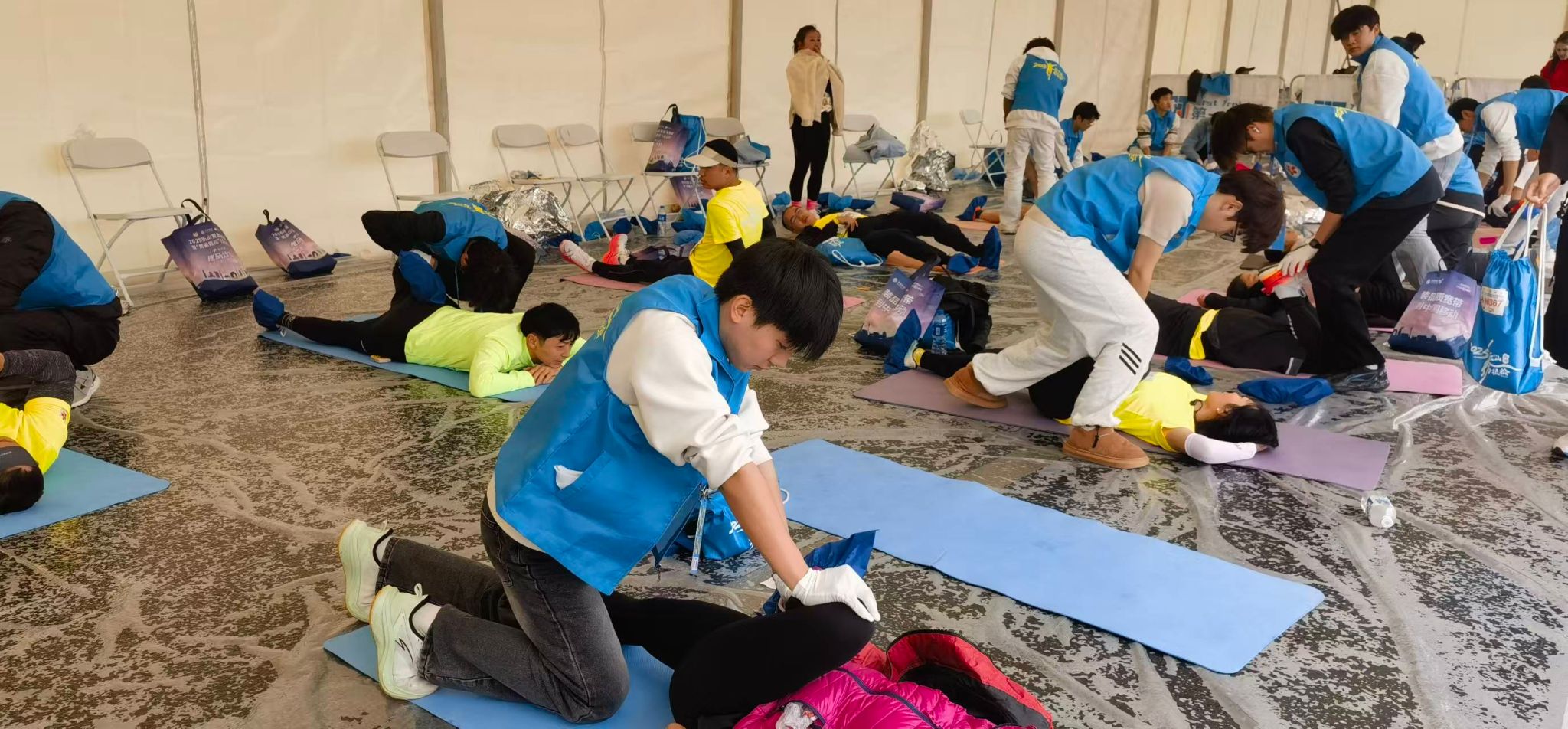 作为本次赛事志愿者服务的核心力量之一,sunbet申搏官方网站自11月起便启动志愿者招募工作,最终选拔出的673名志愿者中,护理、医学、康复等专业学生占比超60%,充分发挥了申搏官网医药卫生类专业优势。为确保服务质量,校团委联合赛事组委会开展了为期两周的系统化培训,内容涵盖岗位职责、应急救护、赛道指引、礼仪规范等,特别邀请专业赛事裁判和医护人员讲解运动损伤处理、心肺复苏等实用技能。
